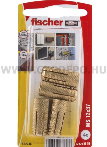 Sárgarézdübel metrikus menettelA fischer MS sárgarézdübel metrikus menettel rendelkezikA csavar becsavarásakor a dübel terpeszt és a furatfalnak feszülAz MS alkalmazható polcok, aggregátorok, stb. rögzítéséhez tömör építőanyagokbanA perem nélküli kialakítás lehetővé teszi a dübel behelyezését a vakolat alá olyan mélyre, amely szükséges a teherhordó réteg, és ez