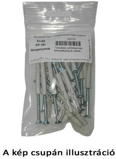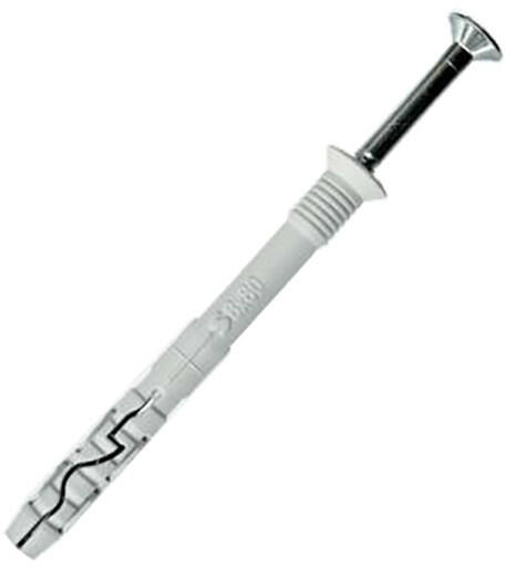 Univerzális nylon dübel. Alkalmazható: üreges fal szerkezet, YTONG tégla. Anyaga: Poliamid 6 (Nylon). Csavarátmérő 5 mm, csavarhossz szükség szerint: minimum 65 mm + a felfogandó tárgy vastagsága.