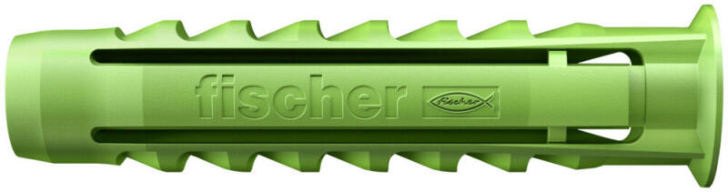 A fischer SX Green dübel legalább 50%-ban újrahasznosított alapanyagokból készül. A fischer SX a négyirányú terpesztésnek köszönhetően optimális tartóerőt biztosít az építőanyagban. Az elfordulásgátló fülek feszesen tartják a dübelt a furatban. A nagyobb rögzítési mélységgel rendelkező változatok ideálisak üreges építőanyagokba, pórusbetonba és vakolt falaz