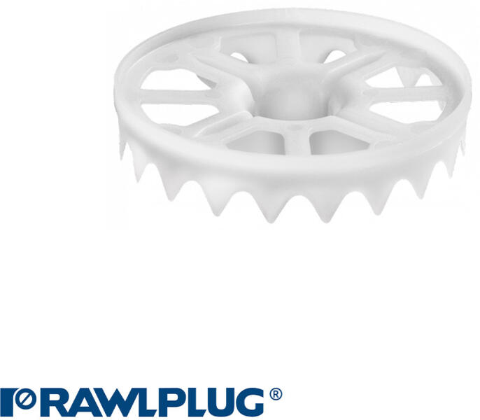 Szigeteléstartó tárcsa körkivágóval Csavaros szigetelésrögzítő dübel süllyesztett beépítéséhez, pl R-TFIX-8SX Süllyesztés és becsavarás egy lépésben Ármérő: 63,5 mm Kompatibilis az R-TFIX-CAP 63 mm-es fdősapkákkal Polisztirol (EPS), ásványgyapot táblákhoz Szigeteléstartó tárcsa körkivágóval, csavaros szigetelésrögzítő dübel süllyesztett beépítéséhez,