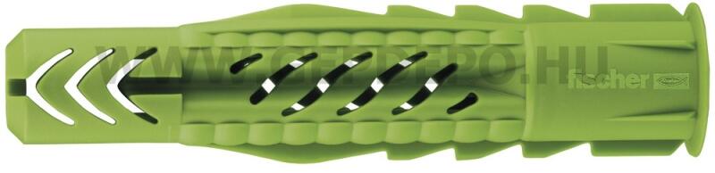 Univerzális nylon dübel peremmel újrahasznosítható alapanyagokból minden típusú építőanyaghozA Fischer UX Green kiváló minőségű nylonból készülLegalább 50% újrahasznosítható alapanyagokat tartalmazGyártása során nem veszélyezteti az élelmiszeripart vagy mezőgazdaságotAz UX Green ugyanolyan tulajdonságokkal és teljesítménnyel rendelkezik mint az eredeti szürke vá