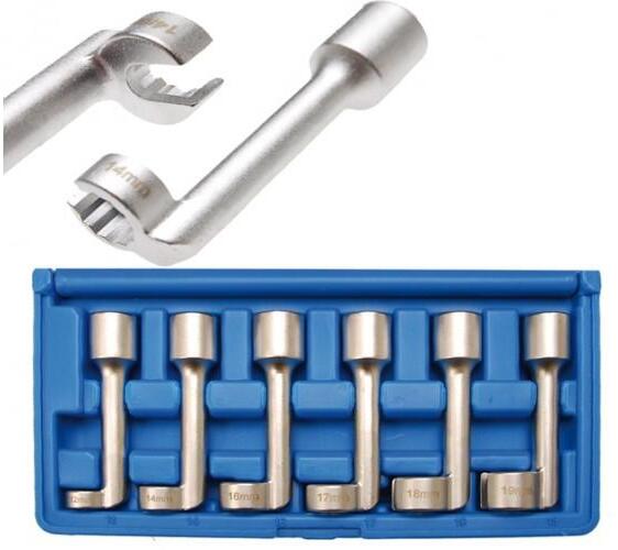 különösen jól használható a csővezetékek szerelvényeihez nincs kiszélesedés mert a lábfejnek speciális profilja van méretek: 12-14-16-17-18-19 mm 1/2" meghajtással meghajlított kivágott dugókulcs kettős hatszöggel hossza: 98 mm