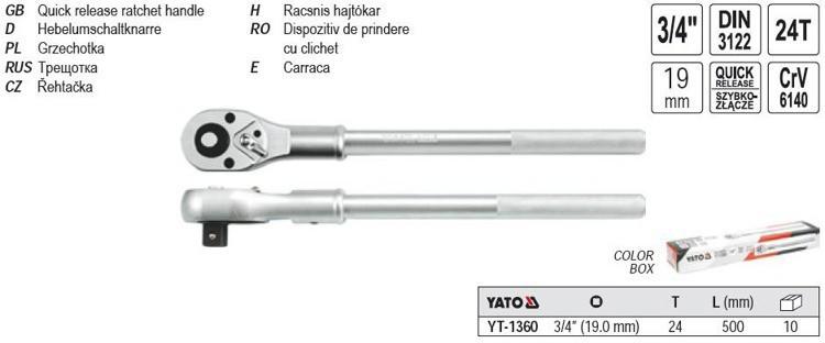 YATO Racsnis hajtószár 3/4" 500 mm 24T DIN3122 CrVTerméknév: YATO Hajtószár racsnis 3/4 col 500 mm 24T DIN3122 CrV Cikkszám: YT-1360 Bruttó ár: 16919 Amennyiben nem találod az általad keresett terméket, vagy a rendelés során segítségre van szükséged, keress minket a KAPCSOLAT menüpont alatt található elérhetőségeken. TUDT AD, HOGY REGISZTRÁLT VÁSÁRLÓKÉNT KEDVEZMÉNYESE