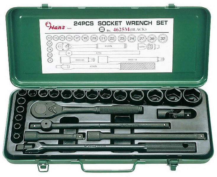 HANS 1/2" dugókulcs készlet 8-32mm 24 részes hatszög 4625M Cr-V fekete az iSzerszámnál. Professzionális, ipari minőségű HANS 1/2" dugókulcs készlet 8-32mm 24 részes hatszög 4625M Cr-V fekete. Anyagösszetétel: Chrome-Vanadium (Cr-V). A 24 részes készlet tartalma 1-1 db: dugókulcsfej: 8; 10; 11; 12; 13; 14; 15; 16; 17; 19; 20; 21; 22; 23; 24; 27; 30; 32mm 24 fogas irányváltós r