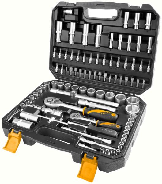 A TOLSEN kéziszerszámkészlet ideális eszköz a professzionális szerelők, technikusok és igényes barkácsolók számára, akiknek megbízható és minőségi szerszámokra van szükségük munkájukhoz. Ez a készlet összesen 94 tartozékot és kiegészítőt tartalmaz, amelyek a gépek, járművek vagy egyéb berendezések javításakor és karbantartásakor a legtöbb gyakori feladatra a