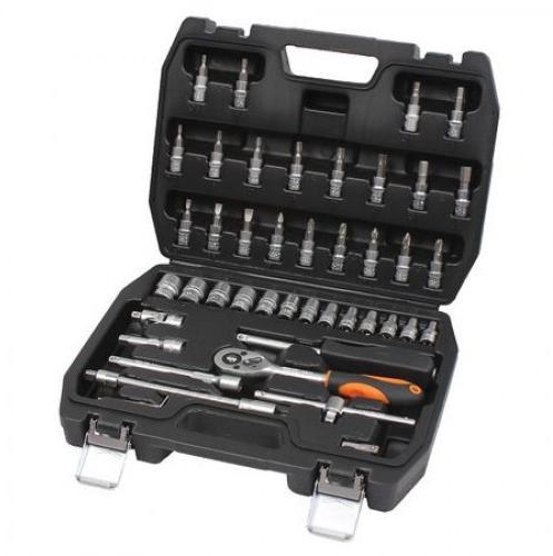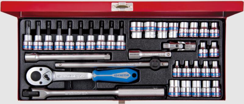 A híres Sthor márka Gola szettje 12 szerszámot tartalmaz. A tartós műanyagból készült praktikus tartóban nemcsak 1/2 "racsnis, hanem 1/2" átmérőjű fej is található. A szett összes fém alkatrésze kiváló minőségű acélból készül. A racsni ergonómikus fogantyúval rendelkezik csúszásmentes felülettel a könnyebb kezelés érdekében. A készlet tökéletesen szolgálja