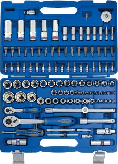 Szerszámkészlet 89 részes kofferben: dugókulcsok, bitek és kiegészítők kiváló minőségű króm-vanádium ötvözött acélból deformációval szemben ellenálló kovácsolt racsnis mechanizmus 72 fog króm-molibdén ötvözött acélból, amely növeli a mechanizmus tartósságát és pontosságát nehéz munkához tervezett racsnis megerősítetett tokba csomagolva, fém zárakkal az