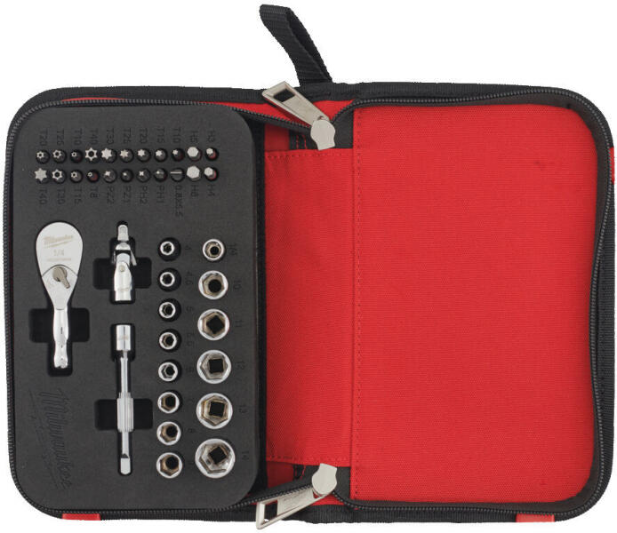 TERMÉK LEÍRÁS: MILWAUKEE® racsni 90 fogas kialakítással, 4°-os forgás osztással a szűk helyekhez FOUR FLAT dugókulcsok nem gurulnak el A SHOCKWAVE IMPACT DUTY tartozékok nem csak nagy igénybevételű alkalmazásokhoz ideálisak, hanem felhasználójuknak teljes megoldást nyújtanak a fúráshoz és rögzítéshez. Kiváló minőségű textil tasak és kivehető habszivacs betét. "&g