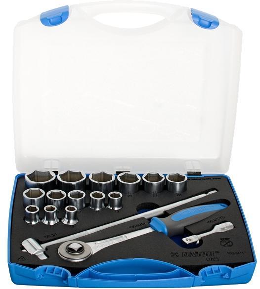 Dugókulcs-készlet, 1/2", műanyag dobozban - 190-6P17 - UNIOR - 17 - 1/2" doboz mérete: 307 x 260 x 70 mm Készlet elemeinek száma: 17