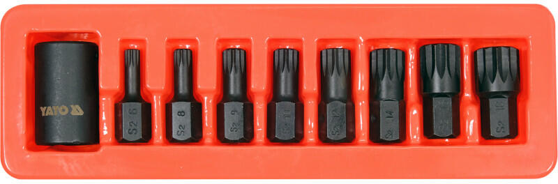 Készlet tartalma: - 7 betét, 10 mm (3/8"), belső hatszögletű kihajtófej: 8 - 9 - 10 - 12 - 14 - 17 mm - 3/8" - 4 betét, 10 mm (3/8"), kihajtófej: 8 - 11 - 13 mm - 3/8" - 1 csúszó fogantyú