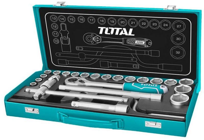 24db Dugókulcs készlet 1/2 / INDUSTRIAL (THT141253) A TOTAL THT141253 (Industrial sorozat) szerszámkészletet menetes csatlakozásokhoz használják összeszerelési és szétszerelési munkákhoz. A modellek funkcionalitása és egyszerűsége megszerettette őket az autórajongókkal és a szakemberekkel, akik autógarázsokban és autószerelő-műhelyekben dolgoznak. A készlet tartalmaz eg