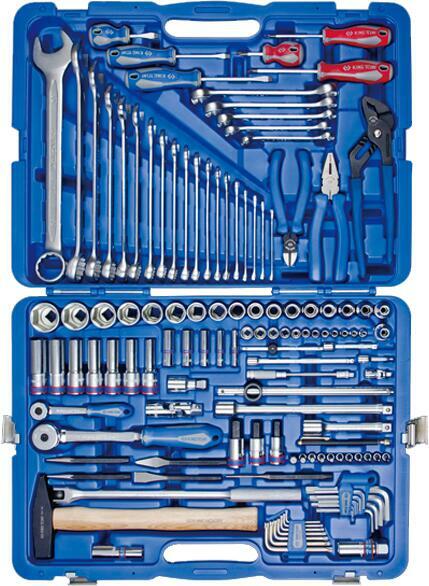 KING TONY 1/4", 1/2" dugókulcs, vegyes szerszámkészlet 128 részes 7528MR. Tartalma: 1060 6, 7, 8, 9, 10, 11, 12, 13, 14, 15, 16, 17, 19, 21, 22, 24, 27, 30, 32mm; 1143R T10, T15, T20, T25, T27, T30, T40; 1145MR H1.5, H2, H2.5, H3, H4, H5, H6, H8, H10; 1421 PH1 x 80, PH2 x 38, PH2 x 100; 1422 5 x 75, 6.5 x 38, 6.5 x 100; 1930 8 x 10, 9 x 11, 12 x 13, 14 x 17, 17 x 19mm; 2033 T10, T15, T20, T25,