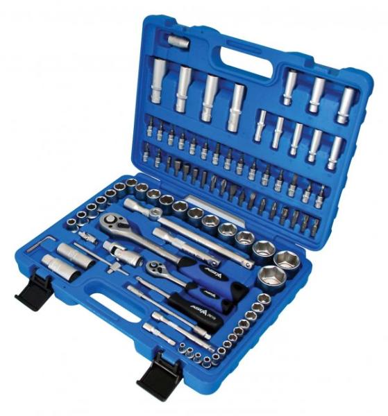 Szerszámkészlet 94db profi Asta A-916094Professzionális, nagyméretű, minőségi profi Asta szerszámkészlet 94 db króm-vanádium acélból, Minden eleme és csatlakozója műanyag kofferben van tárolva. Készlet tartalma:Dugókulcsok: 1/2" 10, 11, 12, 13, 14, 15, 16, 17, 18, 19, 20, 21, 22, 23, 24 mm (L = 38 mm), 27, 30, 32 mm (L = 42 mm) , CrV 50BV30Dugókulcsok: 1/4" 4, 4.5, 5, 5.5, 6, 7