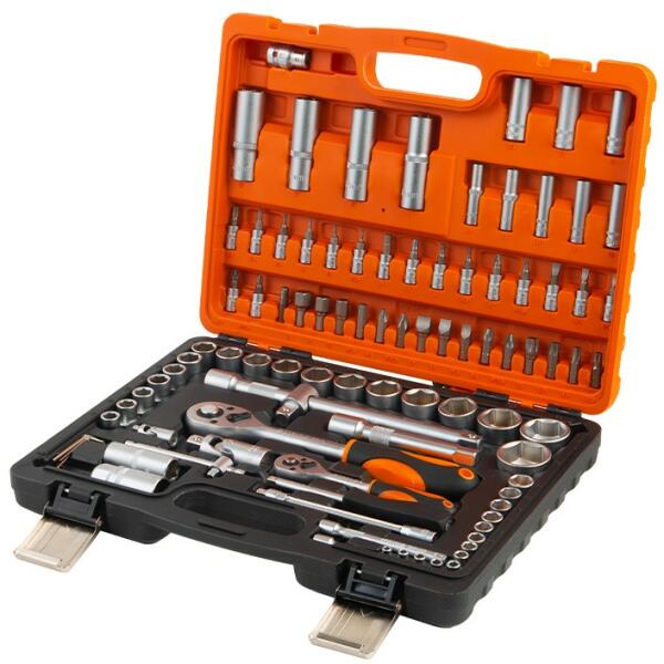 Kendo dugókulcs és bitkészlet 1/4-1/2" 94db-os 4-32mm A 94 részes KENDO dugókulcs készlet egy olyan komplett szerszámkészlet összeállítás, amely minden alapvető szerszámot tartalmaz, amire a ház körüli munkákhoz és még nagyobb projektekhez is szüksége lehet. A készlet tartalmazza az 1/4" és 1/2" dugókulcsfejeket, gyertyakulcsokat, kardáncsuklókat, bittartókat és adapte