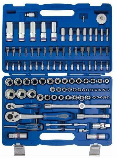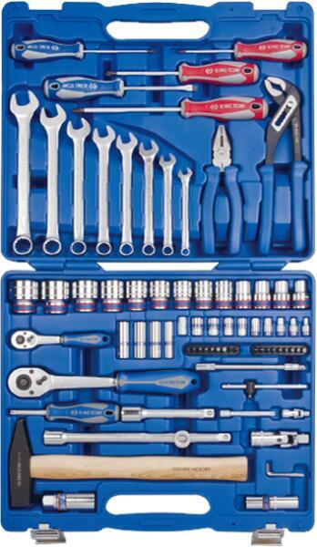 KING TONY 1/4", 1/2" dugókulcs és vegyes szerszámkészlet 77 részes 7577MR. Tartalma: 1025H H3, H4, H5, H6; 1025P PH1, PH2, PH3; 1025S 3, 4, 5; 1025T T10, T15, T20, T27, T30, T40; 1060 8, 10, 12, 13, 14, 15, 17, 19mm; 1115-03 1.5, 2, 2.5mm; 1421 PH1 x 80, PH2 x 100, PH3 x 150; 1422 4 x 100, 6.5 x 100; 2235M 8, 10, 12, 13mm; 2335M 4, 5, 6, 7, 8, 9, 10, 11, 12mm; 4335MR 12, 13, 14, 15, 17, 18, 1