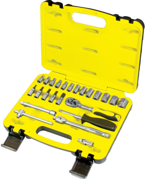 Metrikus hatlapú dugó- és csőkulcsok Króm-vanádium acélötvözet tükörfényű felülettel, alumíniummentes. Fröccsöntött műanyag tokban kapható A készlet tartalma: 13 db Side-Drive® dugókulcs: 4; 4,5; 5; 5,5; 6; 7; 8; 9; 10; 11; 12; 13; és 14 mm Csavarhúzóbitek: 5 db imbusz - 3, 4, 5, 6 és 8 mm Valamint: állítható T-behajtó, gyorskioldós racsnis hajtókar, behajtószár,