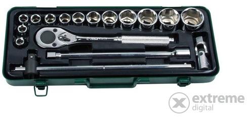 HANS 1/2" dugókulcs készlet 10-32mm 17 részes hatszög 4618M Cr-V az iSzerszámnál. Professzionális, ipari minőségű HANS 1/2" dugókulcs készlet 10-32mm 17 részes hatszög 4618M Cr-V. Anyagösszetétel: Chrome-Vanadium (Cr-V). A 17 részes készlet tartalma 1-1 db: dugókulcsfej: 10; 11; 12; 13; 14; 15, 17; 19; 22; 24; 27; 30; 32mm 24 fogas irányváltós racsnis hajtókar: 250mm toldós