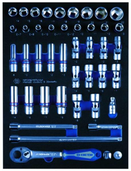 King Tony kézi dugókulcs készlet tartalma Speciális szerszámkészlet autóhoz 3230M: 8, 10, 11, 12, 13, 14, 16, 17, 19 mm 3335M: 10, 11, 12, 13, 14, 15, 16, 17, 18, 19, 20, 21, 22 mm 3375M: E7, E8, E10, E11, E12 3750M : 10, 11, 12, 13, 14, 15, 16, 17, 18, 19 mm 3221-03 toldószár 75 mm 3221-06 toldószár 150 mm 3221-10 toldószár 150 mm 3779-08G racsnis hajtókar 3812 Adapter kézi 3/8"*1/