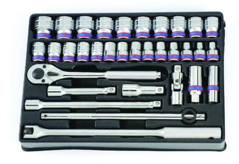 KING TONY 1/2" kézi dugókulcs készlet 6szög 28 részes 9-4328MR. Szerszámosládához. Tartalma: 4335MR: 8, 9, 10, 11, 12, 13, 14, 15, 16, 17, 18, 19, 20, 21, 22, 23, 24, 27, 29, 32 mm; 4027 :T55H, T60H; 4251-5R; 4251-10R; 4452-15FR; 4572-10; 4768-10F; 4791R Tálcaméret #4 (375x265mm)
