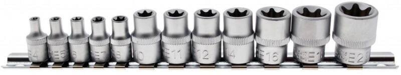 1/4" meghajtással: E4-5-6-7-8 3/8" meghajtással: E10-11-12-14-16-18-20 sima króm bevonattal recézett