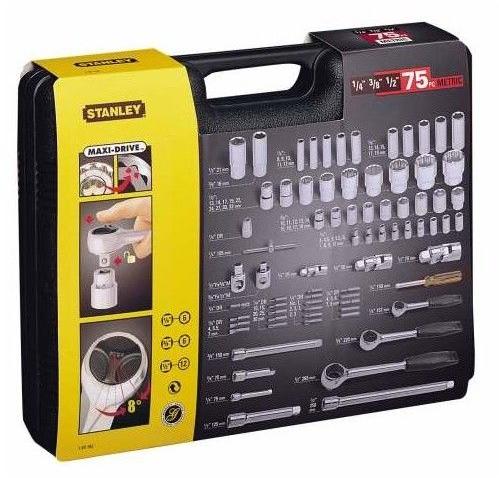 Stanley 75 részes 1/2", 1/4" és 3/8" metrikus dugókulcskészlet Teljesen polírozott króm felület Kényelmes és tartós recézett markolat Keskeny szabványú króm vanádium kombinált villáskulcsok Dugókulcsok / Racsnis hajtókarok A dugókulcsok 6 pontos illetve 12 pontos kialakítással elérhetőek. A 12 pontos kialakítás biztosabb fogást garantál, ha nehezen hozzáférhető az