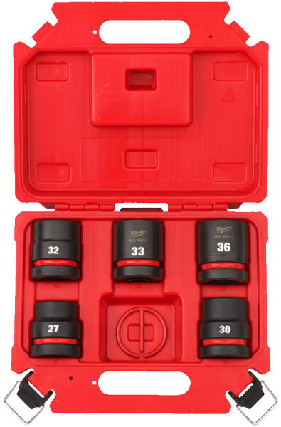 MILWAUKEE® 3/4" dugókulcskészlet kamion és busz szereléséhez! A készlet tartalma: 27 mm, 30 mm, 32 mm, 33 mm, 36 mm + biztonsági rögzítőgyűrű