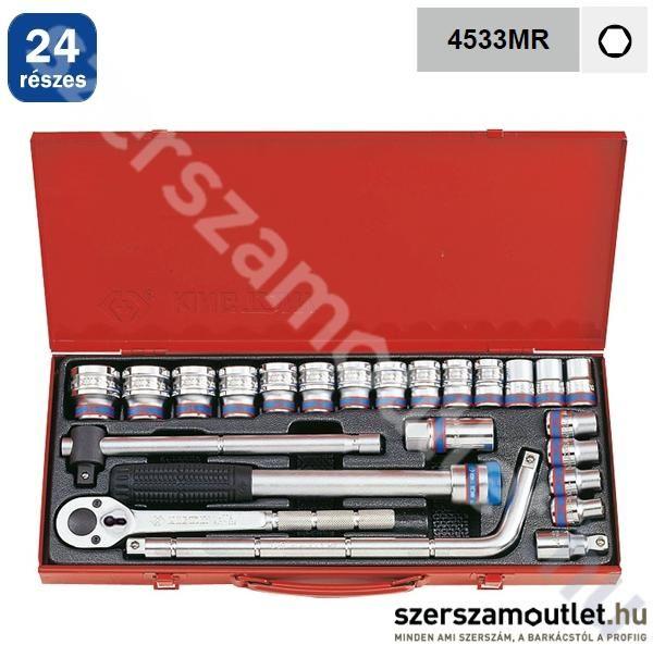 King Tony dugókulcs készlet 1/2" hatlapú 24 db-osA King Tony világméretű cég 1976-os Taiwan-i megalapítása óta törekszik a magas minőségre, a vevői elégedettségre és a munkakörülmények kellemessé tételére. Ipari minőségű termékeire világszerte nagy a kereslet. Kínálatukban megtaláljuk a kézi szerszámokat, elektromos készülékeket, mérőműszereket, tartozékokat