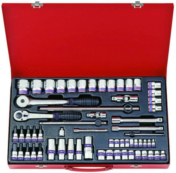 KING TONY 1/2", 3/8", 1/4" dugókulcs készlet 12szög 62 részes 9063MR01. Tartalma: 4330M: 12 13 14 15 16 17 18 19 20 21 22 23 24 27 30 32mm; 3330M:8 9 10 11 12 13 14 15 17 19mm; 363021; 4755-10G; 3779-08G; 3235M: 10 13 17 19mm; 2335M: 4 4.5 5 6 7 8 9 10 11 12mm; 3023: T20 T25 T27 T30 T40; 3025: 4 5 6 8 10; 4251-06; 4572-12; 4791; 3221-06; 3571-08; 3812; 3792; 2221-04; 2571-45