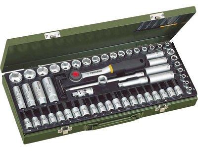 Dugókulcs készlet, 10 mm (3/8'') 65 részes 25 év gyártói garancia Műszaki adatok: Anyag: Króm-vanádium acél · Anyagjellemző: Nikkelezett, Krómozott · Tartalom: 1 készlet · Típus: Dugókulcs készlet Szállítás tartalma: Külső hatlap dugókulcs betétek, SW 6 - 24 mm · Speciális gyertyakulcs betétek, SW 14/16/18/19 mm · Mélyen ágyazott betétek a kiálló csavarokhoz, 10/