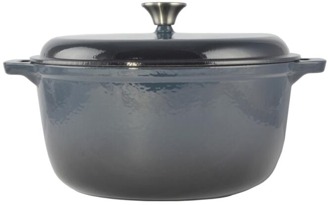 Lábas tulajdonságai: Anyaga: öntöttvas, kívül-belül zománcozott, rozsdamentes acél fedőgomb Mérete: 30 cm széles fülek nélkül , 36 széles a fülekkel együtt; 14,5 magas fedő nélkül; 21,5cm magas fedővel és fogantyúval együtt Doboz mérete: 32*32*17 cm Űrtartalma: 7 L Bruttó súlya: 8,46 kg Nettó súlya: 8,06 kg Használható: gáz-, illetve elektromos sütőben Tisztít