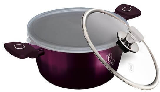 Gyártó: Berlinger Haus Modell: Purple Eclipse Collection 24 cm (BH/6629) Leírás: A Lábas fedővel (4,1 L) a Purple Eclipse Collection része, mely egy elegáns és környezetbarát termékcsalád. A kovácsolt alumíniumból készült lábas fedő Ø24*11,8 cm méretű, 4,1 liter űrtartalommal rendelkezik és egy műanyag fedéllel is ellátva van, hogy megóvja az ételeket a külső hatás