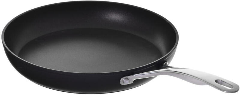 Ballarini Alba® serpenyő, átmérője 26 cm, anyaga alumínium, tapadásmentes, PFOA mentes bevonattal, gyártási helye Olaszország. A rozsdamentes acél nyél főzés alatt nem forrósodik nagyon fel. A hőforrással érintkező felület két réteg rozsdamentes acél és alumínium, használható indukciós főzőlapokon is. A titánnal erősített bevonat tapadásmentességet biztosít, nag