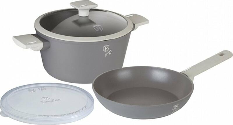 Gyártó: Berlinger Haus Modell: Aspen BH-7079 Leírás: Az Aspen Collection négy részes edénykészlete a kiváló minőségű kovácsolt alumínium tapadásmentes bevonattal tökéletes választás a modern konyhák számára. A szett tartalmaz egy serpenyőt, egy lábast fedővel, valamint egy műanyag fedőt, amelyek mind matt szürke színűek. Főbb tulajdonságok és előnyök Anyag A ké