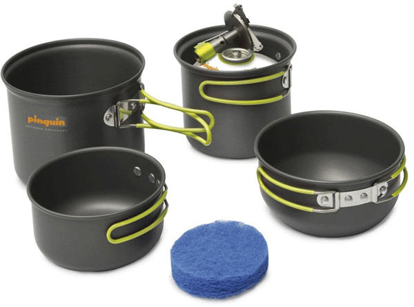 4 darabos kempingedénykészlet, 2 db takaróként használható edény és 2 db serpenyő. A készlet egy 230-as primus bombához illeszkedik. A készlet lehetővé teszi a gázpatron és a kis tűzhely biztonságos szállítását, mivel a tartályban tárolható. nagyobb, 1,5 literes, 166 g-os edény kisebb 0,75 l-es edény 141g nagyobb edény 0,75 l 96g kisebb serpenyő 0,5 l 85g Méretek: 142