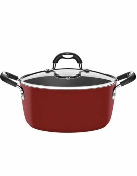 Tramontina 28705/724 Mônaco Indukciós edény piros alumíniumból, 3 mm vastag Starflon Premium tapadásmentes belső felülettel a gyors és egyenletes főzés érdekében. A fogantyú fém, szilikon felülettel, amely csökkenti a hő terjedését és megakadályozza az égési sérüléseket. A fogantyúkon lévő szegecsek alumíniumból készültek, és ha mosogatógépben használják, akk