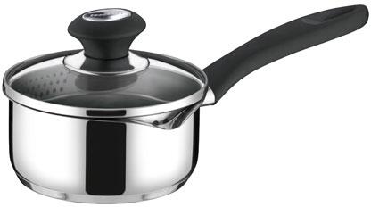 Tescoma PRESTO Nyeles lábas tölcsérrel és fedővel ø 16 cm, 1,25 l A PRESTO nyeles lábas tölcsérrel és fedővel első osztályú rozsdamentes acélból készült, extra erős szendvics aljjal és ergonómikus fülekkel ellátott. A rozsdamentes acél üveg fedő gőznyílással a főzés kiváló ellenőrizhetőségét teszi lehetővé. Az összes típusú tűzhelyen használható - gáz,
