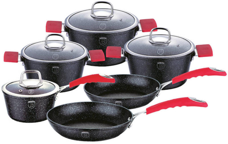 Gyártó: Berlinger Haus Modell: Black Stone Touch (BH/1169) Leírás: Berlinger Haus Black Stone Touch Line BH-1169, 10 részes, márvány bevonatos edénykészlet, fekete színben. Szilikon fogók a nyeleken, kívül is ugyanaz a bevonat. Indukciós, halogén, gáz, elektromos, kerámia tűzhelyre is jó!Jó konyha csak jó eszközökkel létezhet! A cégünk által kínált, kiváló minőség