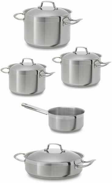 Szín: Ezüst; Anyaga: Rozsdamentes acél; Típus: Edénykészlet; Átmérő: 16 / 24 / 28 cm; Mosogatógépben mosható: 1; Darab/csomag: 5