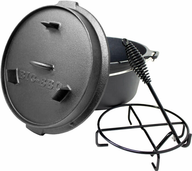 Mindig forró a vas a tűzben: a Klarstein Guernsey prémium öntöttvas edényt univerzálisan lehet használni főzésre, párolásra vagy sütésre égő briketten, tábortűzön vagy serpenyőkényt grillen. Az univerzális rusztikus edény előre hőkezelt, így azonnal készen áll a főzésre. Az öntöttvas kialakítás gondoskodik az optimális hőelosztásról. A magas peremmel ellátott