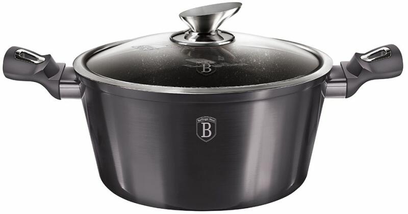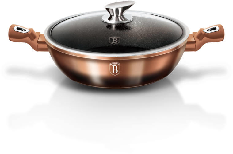 Gyártó: Berlinger Haus Modell: Gold Noir 28 cm (BH/1893) Leírás: A Berlinger Haus Metallic Line Rosegold Noir kovácsolt alumíniumból készült lábas három rétegű márványbevonata és a turbó indukciós talp lehetővé teszi, hogy ételei energiatakarékosan és gyorsabban elkészüljenek. Mindenféle főzőlapon - indukciós lapon is - használható. Ergonomikus, puha tapintású fog