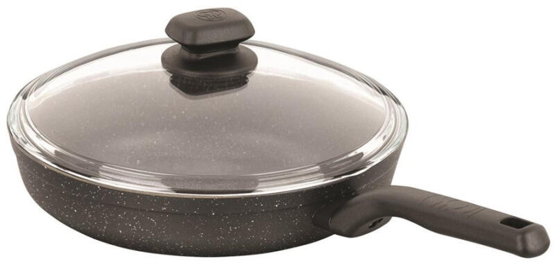 Kovácsolt alumínium serpenyő fedővel Korkmaz Ornella PTFE bevonat kiváló tapadásgátló tulajdonságokkal a belső felületeken Extra ellenállás és keménység a karcolások ellen Környezetbarát gyártási technológia Főzés mérgező gőzök nélkül (nincs PFOA, kadium vagy ólom) Könnyen tisztítható Maximális idő- és energiamegtakarítást biztosít Solar Base alaprendszeré