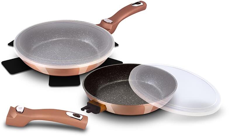 Gyártó: Berlinger Haus Modell: Metallic Line Rose Gold Edition 4 pcs (BH/7742) Leírás: A 4 részes serpenyő szett levehető nyéllel a BerlingerHaus Metallic Line Rose Gold Edition termékcsaládjának része. Ez a set tökéletes választás a modern konyhák számára, mely eleganciát és praktikumot ötvöz. A 3 rétegű márvány bevonattal ellátott serpenyők ideálisak a mindennapi f
