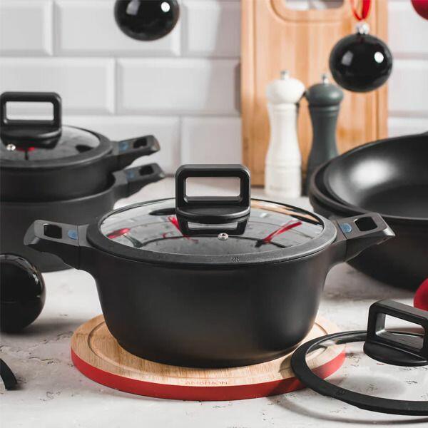 Megjegyzés: Ez a leírás automatikusan le lett fordítva magyarra. Ambition Ultimo edény fedővel, ILAG bevonattal, hőmérsékletjelzővel, 18 cm, 1,8L A 18 cm átmérőjű Ultimo főzőedény öntött alumíniumból készült, ami tartóssá és deformálódóvá teszi. Az öntött alumínium biztosítja a hő egyenletes eloszlását a serpenyő teljes felületén, függetlenül az energiafor
