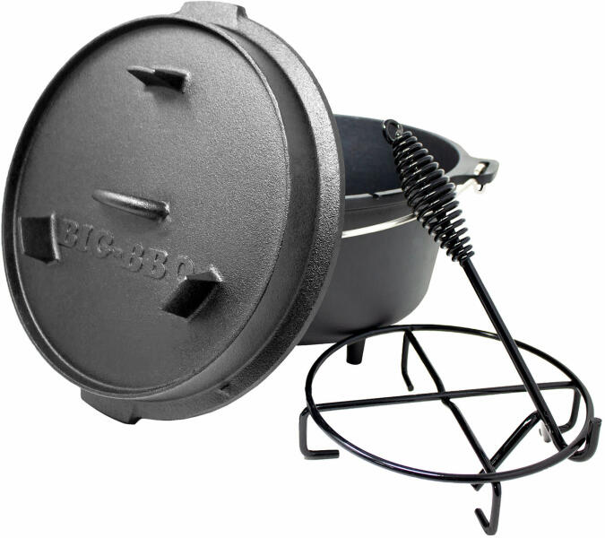 Mindig forró a vas a tűzben: a Klarstein Guernsey prémium öntöttvas edényt univerzálisan lehet használni főzésre, párolásra vagy sütésre égő briketten, tábortűzön vagy serpenyőkényt grillen. Az univerzális rusztikus edény előre hőkezelt, így azonnal készen áll a főzésre. Az öntöttvas kialakítás gondoskodik az optimális hőelosztásról. A magas peremmel ellátott