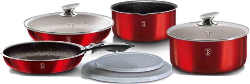 Gyártó: Berlinger Haus Modell: Metallic Burgundy Line (BH/6145) Leírás: A BerlingerHaus tapadásmentes edényei 3 rétegű és tartós márvány bevonatukkal megakadályozzák, hogy sütés-főzés közben az étel hozzáragadjon az edények falához. Minimális zsiradékkal használhatók, így segítenek az egészséges táplálkozásban. Bevonatuk nem tartalmaz káros anyagokat, PFOA, ólom