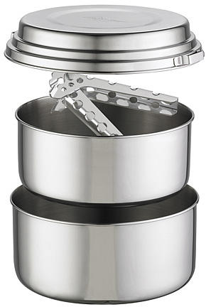 Az Alpine 2 Pot Set egy tartós és könnyű edénykészlet, amelyet két személy számára terveztek. Rendkívül ellenálló rozsdamentes acélból készült, a legszélsőségesebb körülmények között is megbízható. A fedő mindkét edényre ráfér, és tányérként is használható. A készlet tartalma: 1x edény 1,5 l, rozsdamentes acél 1x edény 2 l, rozsdamentes acél 1x fedél, r