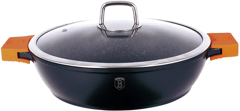 Gyártó: Berlinger Haus Modell: Granit Diamond 28 cm (BH/1109) Leírás: A Granit Diamond Line Alacsony lábas fedővel (3,8 L) egy tökéletes választás a modern konyhák számára, amely eleganciát és praktikumot ötvöz. Ez a matt fekete-narancssárga színű lábas öntött alumíniumból készült, és 28*7,5 cm méretű, 3,8 liter űrtartalommal rendelkezik, így ideális méretű a nag