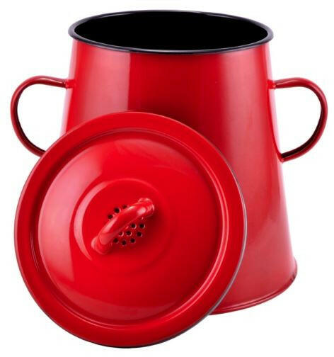 Anyaga: zománcozott vas Méretei: 21,5 cm magas fedő nélkül, 24 cm magas fedővel, 17 cm felső átmérőjű, 23 cm alsó átmérőjű, 27 cm szélessége füllel együtt Űrtartalma: kb 5 l Súlya: 1,12 kg Színe : piros Tisztítása: semleges folyékony mosogatószerrel mossa el! Kerülje a karcosodást okozó szerek és eszközök használatát!