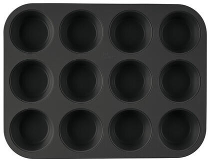 Anyag A sütőforma szénacélból készült, amely rendkívül tartós és hosszú élettartamot biztosít. Méret A sütőforma mérete 35*26,5*3 cm, így ideális a 12 csészés muffin elkészítéséhez. Szín A matt fekete szín elegáns és modern megjelenést kölcsönöz a sütőformának. Tapadásmentes bevonat A sütőforma 3x tartósságú tapadásmentes titánPro bevonattal van ellátv