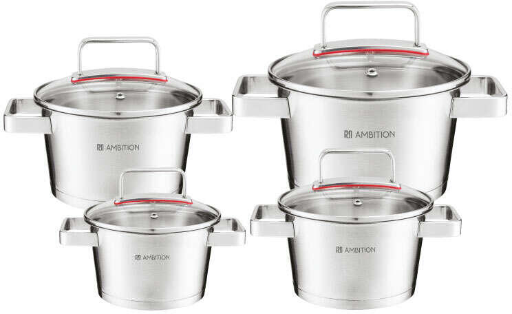 Az Ambition márkájú Selection lábas és serpenyő sorozatot a gasztronómia iránt érdeklődő legigényesebb vásárlók számára tervezték. 18/10-es (AISI 304), legjobb minőségű rozsdamentes acélból készült. Ez a típusú acél nem lép reakcióba az élelmiszerrel, még a savas termékekkel sem, ellenáll a koncentrált savaknak, lúgoknak és a magas hőmérsékletnek egyaránt.